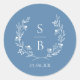 Royal Blue Botanical Monogram Wreath Wedding Classic Round Sticker