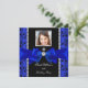 Royal Blue Bow Damask Birthday Party Silver Photo Invitation