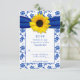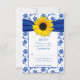 Royal Blue Damask Sunflower Wedding RSVP Card
