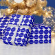 A wrapping paper designed with a royal blue dot pattern on a white background and name. Customize the wrapping paper with your special name or text among other options.