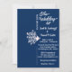 Make your first impression last with this stunning royal blue and white invitation featuring fancy script fonts and a white flower. Customize this wedding with your own information to make it your own.