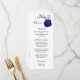 royal blue flower silver leaves white wedding menu