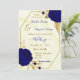 royal blue flowers gold geometric wedding invitation
