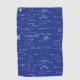This royal blue golf towel is perfect for the math enthusiast who loves to show off their skills on the course! The towel features formulas and equations in white, making it a great way to show off your knowledge while you're enjoying a round of golf. Illustrated and designed by Patricia Alvarez.