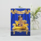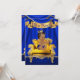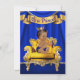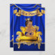 Invitations de douches de bébé royal bleu et or avec adorable bébé ethnique portant une couche bleue royale et couronne bleu et or sur un beau bleu royal et l'or chaise et rideau arrière - plan. Ces invitations royales à la douche pour bébé princier bleu et or sont facilement personnalisers pour votre événement en ajoutant simplement vos détails dans le style de police que vous préférez.