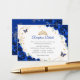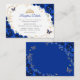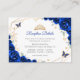 Royal blue, gold and white floral Quinceanera reception details enclosure cards. Features, script font, gold butterflies, watercolor roses and tiara. Perfect for an elegant princess style glam celebration. Personalize with your own details.