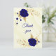 romantic royal blue flowers and gold leaves botanical thank you card.