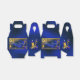 Prince baby shower favour boxes with pretty royal blue and gold prince things on a beautiful royal blue and gold background. You can customized with your text.