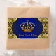 Royal blue and gold crown water bottle labels with beautiful blue and gold crown on a fancy royal blue and gold swirl background. You can add text in the font style and colour of your choice. Not for use in ice buckets - these are not water proof.