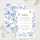 Royal Blue Gold Tiara Floral Butterfly Quinceañera Invitation