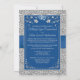 Si vous avez trouvé l'amour de votre vie et que vous voulez invitation toute votre famille et vos amis pour assister à la jonction de vos deux vies et de vos coeurs, alors ce faire-part de mariage floral bleu et gris avec des images d'une paire de coeurs unis au-dessus d'un ruban bleu et d'un ruban arc courant au centre de l'invitation est sûr d'attirer l'attention de tout le monde. Le côté avant a les noms de la mariée et du marié au-dessus des coeurs, et sous les coeurs est un verset personnalisable qui dit, "Deux vies, deux coeurs, unis par l'amitié, unis pour toujours dans l'amour". L'arrière a le même coeur de l'avant en haut de l'arrière sur un arrière - plan bleu royal avec votre cérémonie de mariage et les détails de la réception imprimés en gris clair. Il y a une bordure en argent simulée autour de la carte entière sur l'avant et l'arrière. Si vous avez besoin d'autres articles correspondants, envoyez votre demande par courriel à niteowlstudio@gmail.com ou utilisez la fonction conversation Zazzle pour entrer en contact.