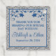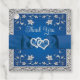 Keep with your royal blue and silver Love Hearts wedding theme with this romantic wedding favour tag with images of a pair of joined hearts overtop of a royal blue ribbon and bow image running across the centre of the tag. There is a simulated silver border around the edges of the tag on the front and back sides. The front side says, "Thank You" in grey and the back of the tag is personalized to say, "Thank you for sharing our special day with us!" and also has the names of the bride and groom and the wedding date in royal blue on a grey background on the back with a blue floral arch at the top. If you need any additional matching items, please email your request to niteowlstudio@gmail.com or use the Zazzle chat feature to get in touch.