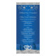 This romantic royal blue and silver grey floral wedding program card has an image of a pair of joined hearts overtop a royal blue ribbon and bow image running across the bottom of the card. There is a simulated silver border at the top and bottom of this wedding program with a royal blue text area on the front that has the names of the bride and groom, the wedding date, and all the particulars of the wedding ceremony in grey above the ribbon. The back is grey with royal blue flowers arched over the wedding party details in blue. If you need any additional matching items, please email your request to niteowlstudio@gmail.com or use the Zazzle chat feature to get in touch.