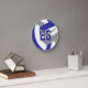 Choose your own colours! This custom colours wall clock for a volleyball player's sports room features the image of a simple volleyball that has royal blue, grey and white panels - personalize with the athlete's jersey number - to change the colours of the volleyball's blue & grey panels and the jersey number, click the "Edit this design" button (above) - by katz_d_zynes