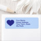 This return address label features a shapely royal blue heart.