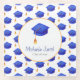 Royal blue graduation coaster with a pattern of blue graduation caps. Add their name and graduation year and make their graduation party more special by adding these keepsakes. Illustrated and designed by Patricia Alvarez.