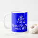 Royal blue Keep Calm Mug | Customize text template. Cute keepcalm gift idea for men and women. Customize background colours ie blue. Create your own funny KeepCalmandCarryOn parody. Simply edit the text of this template to make a unique design. Popular carryon quotes: Keep calm and party on. Keep calm and love me. Keep calm and drink coffee. Personalized mugs are a great gift idea for friends and family.