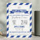 Customizable royal blue striped baby shower invitation with silver faux glitter crown.