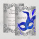 Beautiful royal blue feather mask silver and red masquerade party RSVP. This pretty royal blue masquerade party RSVP is easily customized for your event by adding your details in the font style and wording of your choice.