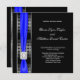 Royal blue black and white dots with bow black and blue wedding invitation.