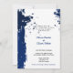 Royal blue paint splatter decorates the artistic marriage celebration invitation. The design gives the freedom for changing the background fill. When matching the background to your wedding colours, please remember to modify the font colour. For customization and design enquiries, please contact https://kbmd3signs.com/contact/.