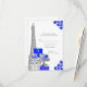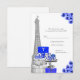 Paris RVSP response card with beautiful silver Eiffel Tower, elegant Paris gift packages, silver glitter high heel shoes on a royal blue floral background. This beautiful Paris rsvp card is easily customized for your event by simply adding your details in the font style and colour, and wording of your choice. You can also change the background colour. This is a printed design with no real diamonds, jewels, glitter, etc.
