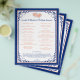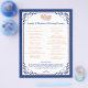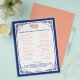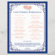 This royal blue, peach, and white wedding itinerary is a perfect addition to a destination wedding welcome basket. Your guests are sure to be impressed with this handy guide to let them know what is in store for them over the days surrounding your wedding. The design features a royal blue, peach, and white colour scheme with the text printed in royal blue and peach. There is a royal blue scroll frame decoration that matches the wedding invitation and there are a pair of joined hearts at the top in simulated peach glitter surrounded by printed on crystals. The backside can hold more information if you need it. Contact niteowlstudio@gmail.com if you need any changes or other matching items.