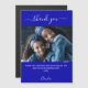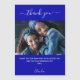A royal blue background colour. White, large hand lettered script with swashes and the text: Thank You. Personalize and add your photo, thank you note and name.