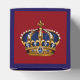 Royal blue red and gold crown prince baby shower favour boxes with beautiful blue and gold jewel crown on a regal red and royal blue background. These elegant royal baby shower boxes are easily customized for your event by adding text. You can also move the crowns and change their size as needed. You can also change the background colour. This is a printed design with no real jewels, etc.