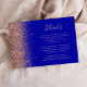 The left-hand edge of this elegant modern wedding details enclosure card features a rose gold faux glitter design. The customizable text combines pale rose-coloured handwriting, copperplate and italic fonts on a royal blue background. The reverse side features a matching royal blue and rose gold glitter design.