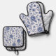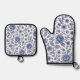 Royal Blue Roses Floral Pattern Oven Mitt & Pot Holder Set