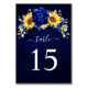 Royal Blue Rustic Sunflower Modern Floral Wedding Table Number