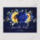 Royal Blue Rustic Sunflower Modern Save the Date P Postcard