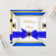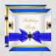 Royal Blue Sapphire Gem Jewel Gold Bow Birthday Invitation
