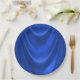 Royal blue satin paper plates. These beautiful royal blue paper plates can be customized with text in the font style of your choice.