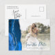 Royal Blue Silver Agate Custom Photo Save the Date Postcard