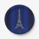 Royal Blue Silver Eiffel Tower Paris Chic Wedding Paper Plate