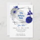 Invitation royal bleu argent floral géométrique anniversaire