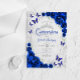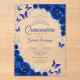 Royal blue silver and white Quinceanera celebration invitation. Features, script font, silver butterflies, watercolor roses and tiara. Perfect for an elegant princess style glam celebration. Personalize with your own details. Stylish transparent or frosted acrylic invitations.