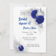 Gorgeous royal blue rose and lilies with silver rose and daisy flower botanical bridal shower invitation .