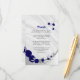 romantic royal blue flowers and silver grey leaves against marble background details enclosure card.