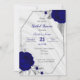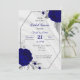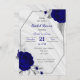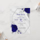 elegant romantic royal blue flowers and silver grey leaves botanical geometric luxury bridal shower invitation