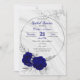 elegant romantic royal blue flowers and silver grey leaves botanical wreath luxury bridal shower invitation