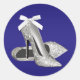 Elegant royal blue high heel shoe sticker. This pretty silver and royal blue high heel shoe sticker is easily customized for your event by simply choosing the "Customize it!" button to begin adding your event details, font style, font size & colour, and wording. Please note - all of the stickers, cards and invitation designs you will find on Zazzle are printed graphics with no actual jewels, bows, raised, embossed, or added parts or pieces.