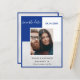 A modern wedding Save the Date photo card. Royal blue, white and faux silver metallic looking colour blocks. Personalize and add your photo and wedding details.