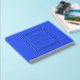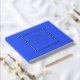 Solid royal blue colour, simple wedding guest book with stylized foil print within a square border that features the bride and groom's name along with wedding date in your choice of colour foil print. Seen here in silver foil print. Select your guest book style.