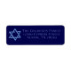 Cette étiquette d'adresse de retour de Bat bleu royal ou de Bar Mitzvah a une belle étoile artistique de David dessiné à côté de votre adresse personnelle. Remplissez les étiquettes avec votre nom personnalisé sur étiquettes pour une famille juive.