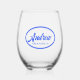 A trendy wedding party gift for your groomsman! Stemless wine glass that features the name of your groomsman in royal blue colour printed in a stylized script and surrounded by an oval design of the same colour. Personalize your wine glass by replacing name with groomsman name. A great party supply idea for a bachelor party!