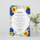 Royal Blue Sunflower Menu Mariage géométrique