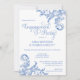 © Socialite Designs Inc. Celebrate your engagement with timeless elegance! Our customizable engagement party invitation features beautiful corner swirls and flourishes, painted in soft royal blue watercolor. The vintage design, set against a white paper background, complements the matching wedding collection perfectly. This invitation is ideal for any time of year celebration, adding a touch of sophistication and charm to your special event. Personalize it with your own details to make it truly unique!